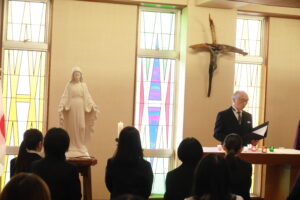 柔らかな光が差し込むチャペルの中、新入生たちはこれからの学びに胸を膨らませ、穏やかで温かい門出の日となりました。