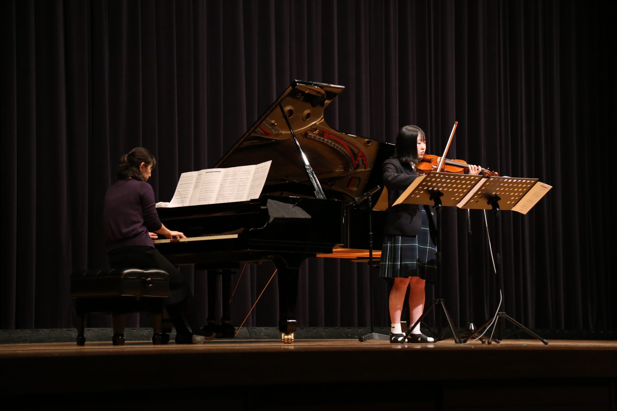 12月20日(金)に、「クリスマスのつどい」を行いました。第一部「最初のクリスマスを思い起こす」では聖書朗読や今年来日した教皇フランシスコの動画鑑賞をし、第二部「クリスマスを共に祝う」では、キャロルコンクール優勝クラスの合唱や、生徒によるバイオリン演奏、クリスマスカード交換などを行いました。近づいてきたクリスマスを想い、生徒たちが共に平和を祈り、お互いを祝福する機会となりました。