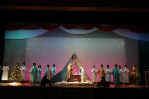 第2部では、イエス・キリストの誕生を祝うタブローが行われ、全校生でハレルヤ・コーラスを合唱しました。また、今年度は中高生全員でクリスマスカードの作成と交換をし、クリスマスのお祝いをしました。