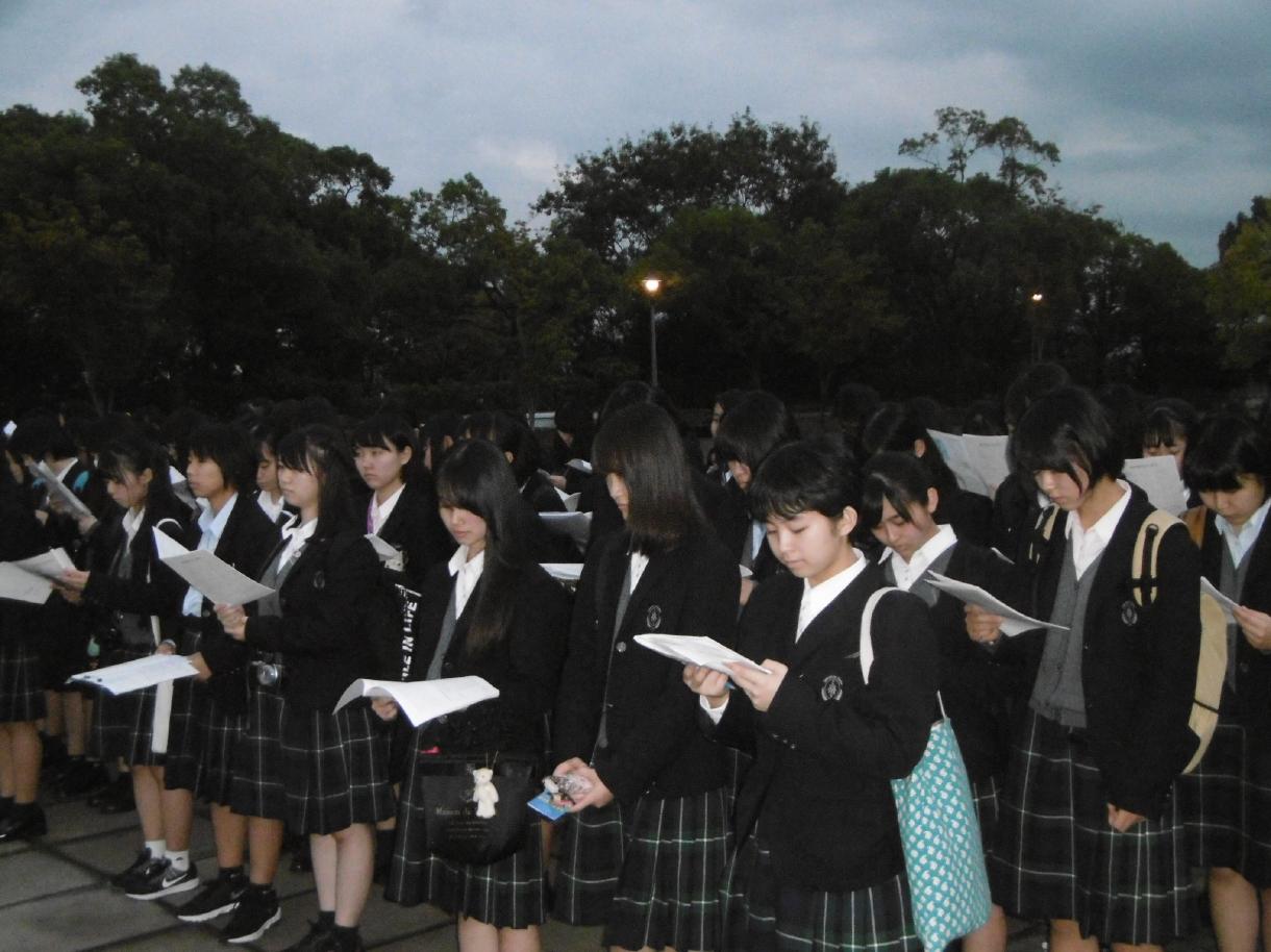 今年は原爆が投下されてから73年になります。原爆で犠牲になった方々のため,そして戦争で犠牲になったすべての方々のために黙祷と祈りを捧げました。また,私たちが平和な世界を作る責任を持っている自覚を新たにするため,「平和を求める祈り」唱えました。