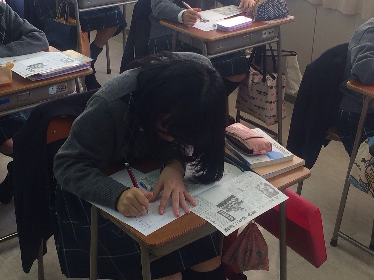 今年度は、高校2学年において、修学旅行の事前指導と事後指導に新聞を取り入れた指導を行いました。事前指導として、戦後70年の新聞特集記事や見学地に関わる記事を読んで知識を身に付けました。また、事後指導として、一貫特進クラスと特進クラスの生徒が修学旅行での経験を基に意見文を書き、新聞に投稿しました。