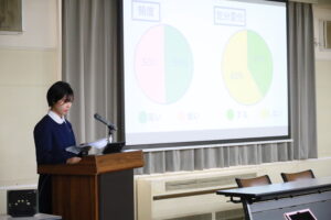 3年生が自分で設定したテーマを1年かけて探究した成果を、1,2年生に発表しました。