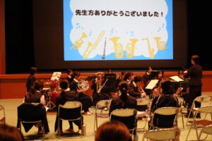 お世話になった3年生や先生方、そして長年お世話になった野田町校舎へ、部活動や有志、各学年の出し物を通して感謝を伝えました。