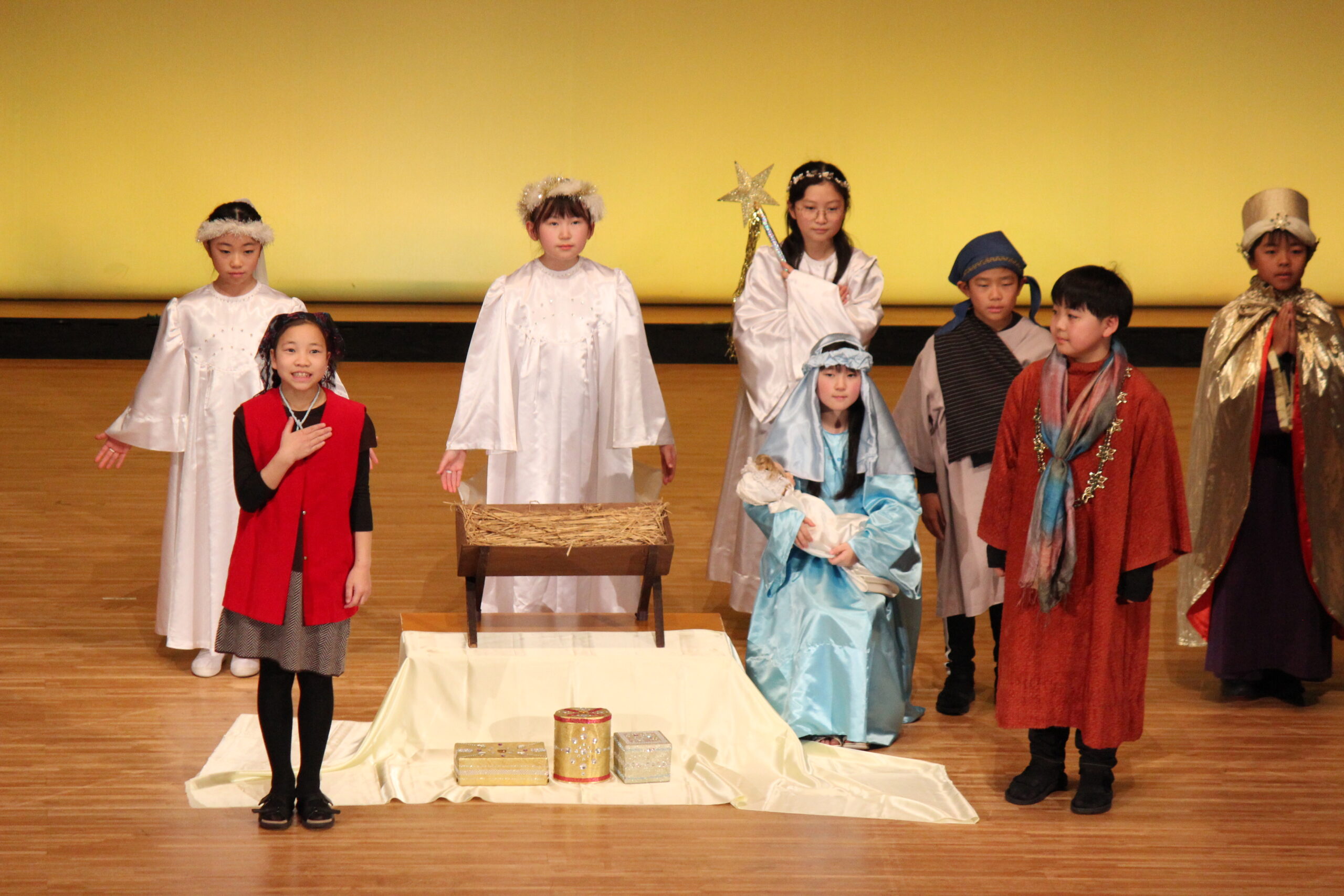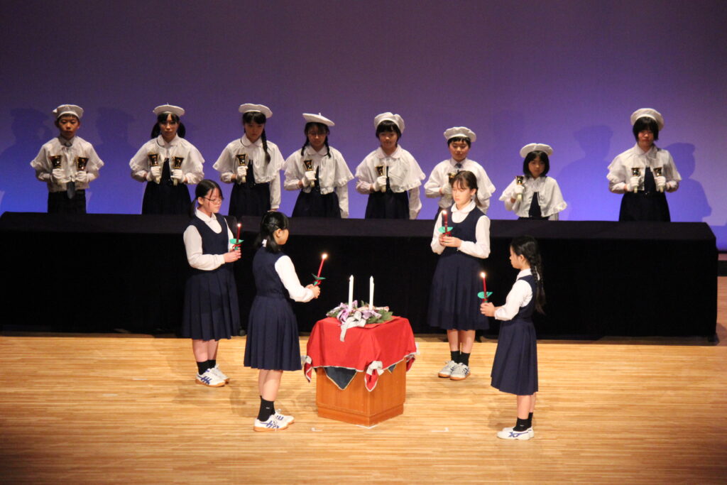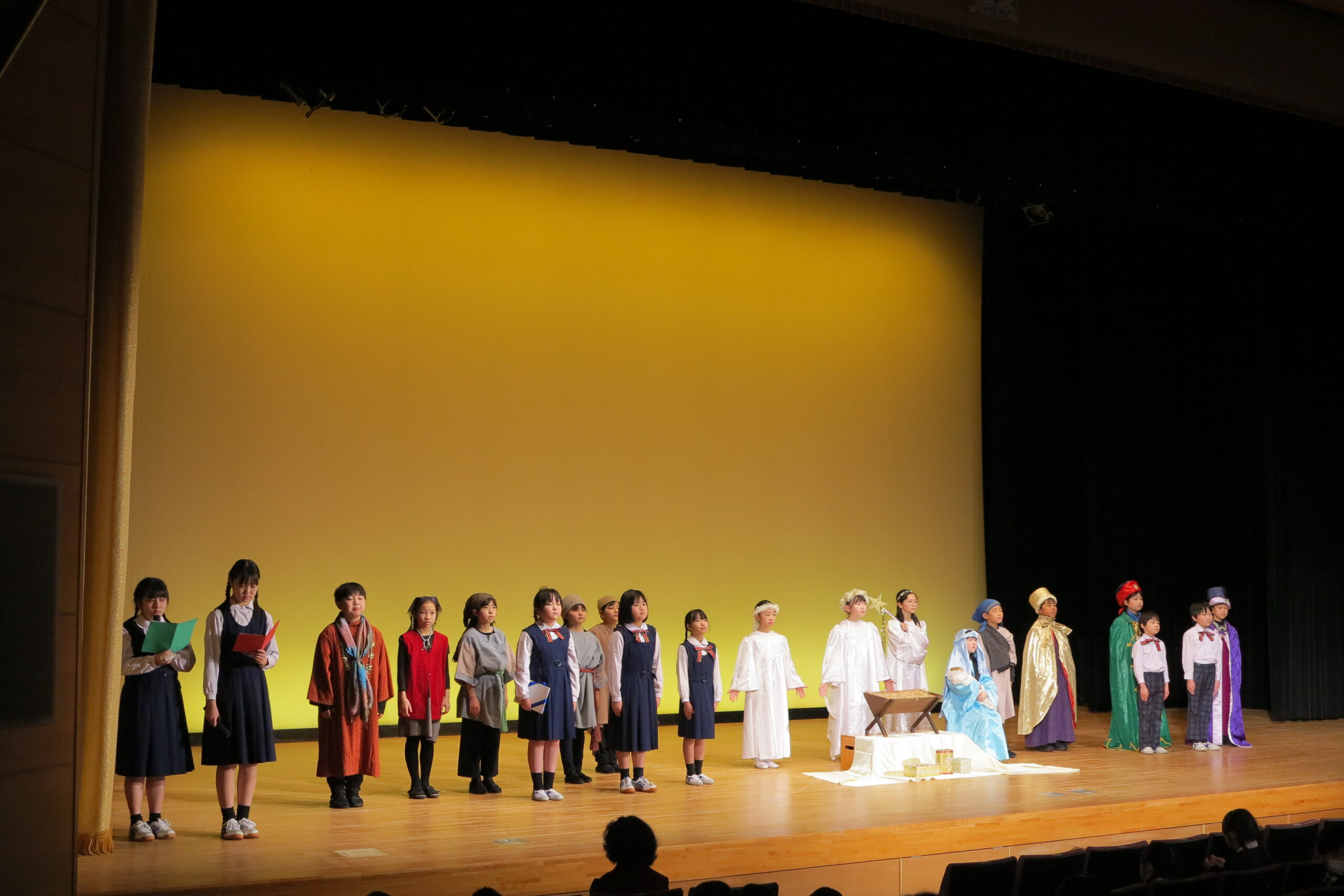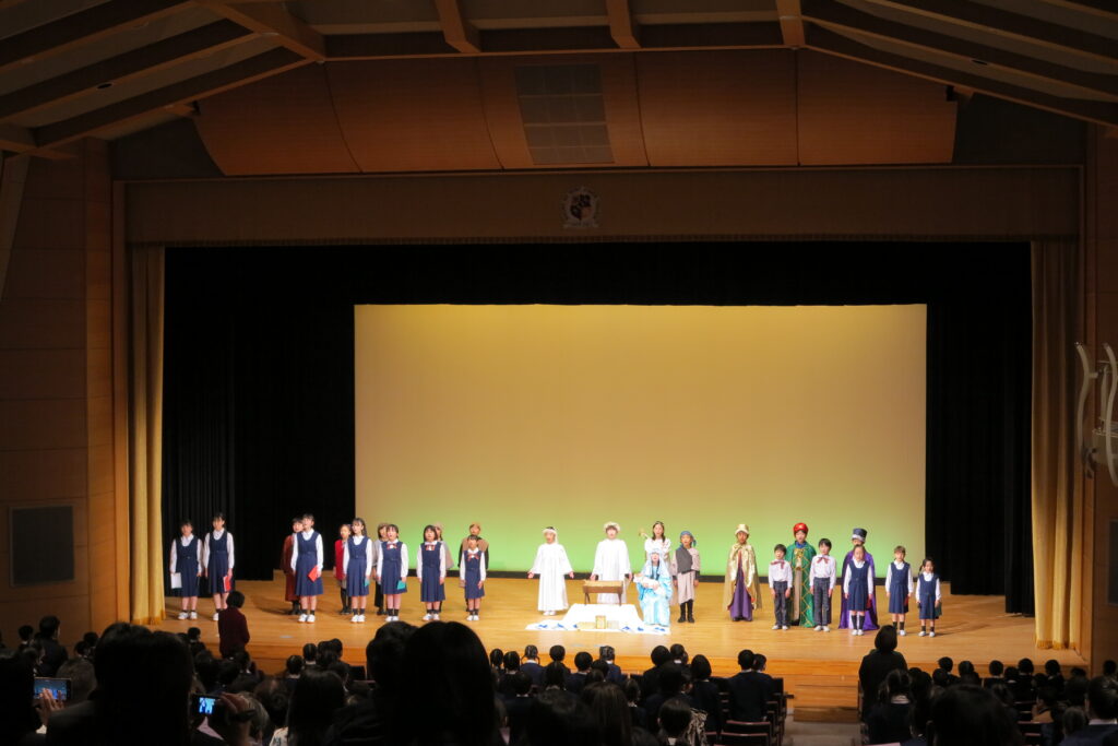 12月19日(金)に短大のマリアンホールでクリスマス祝賀式を行いました。 4年生による聖劇を鑑賞し、待降節の実行表をお捧げしました。