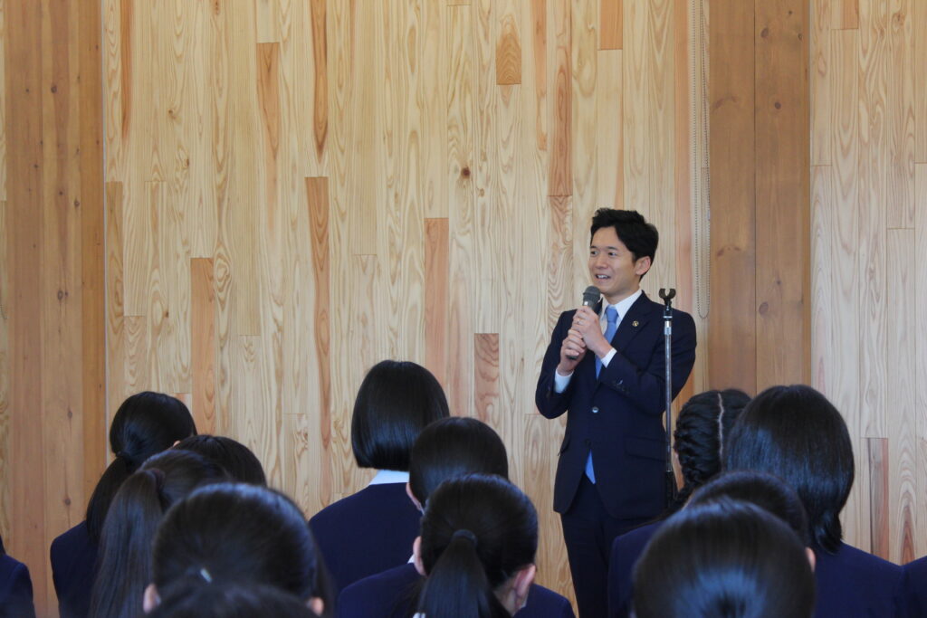 2月21日(土)に桜の聖母学院中学校新校舎落成式を行いました。 中学生も参加し、落成式の後には説明を聞きながら新しい校舎を見学しました。