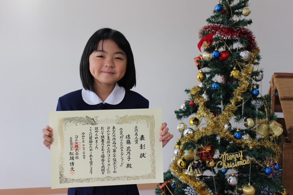 「第21回 ボンドのコニシ 夏休み工作コンテスト」において、5年生の佐藤花乃子さんの作品(折りたたみランプシェード)が、大賞となる「工作名人賞」を受賞しました。その他にも本校から2名が入賞しています。