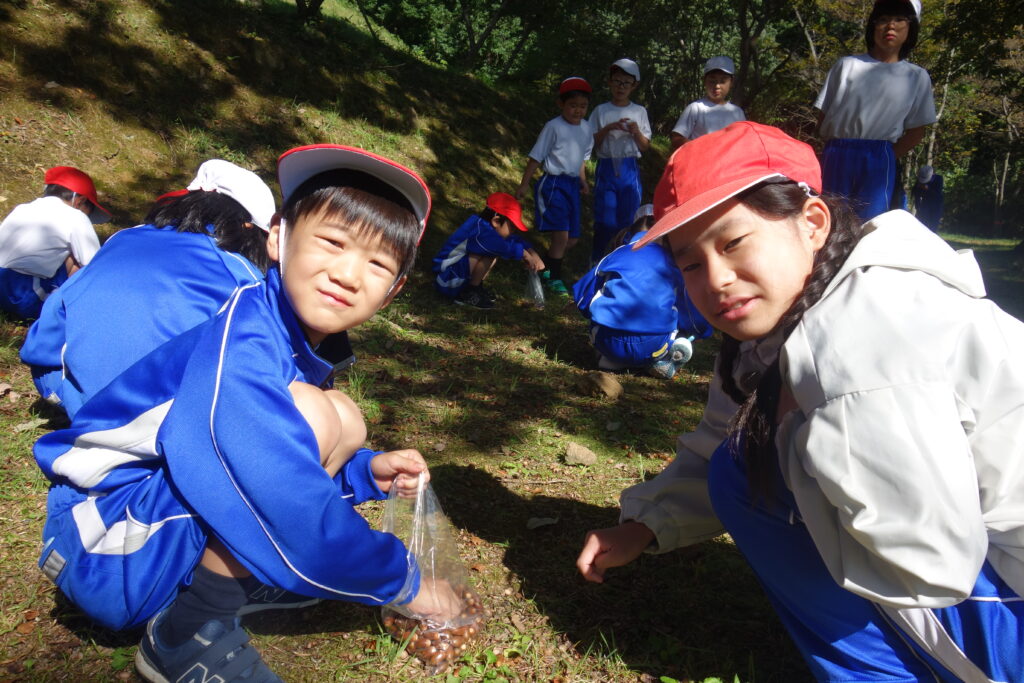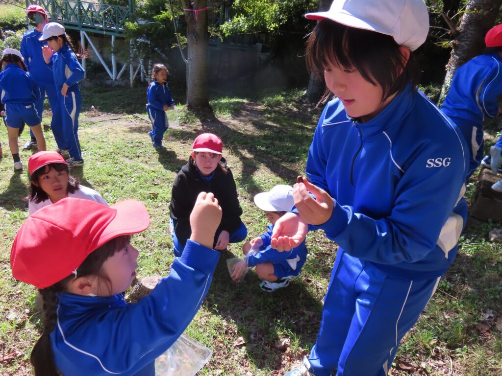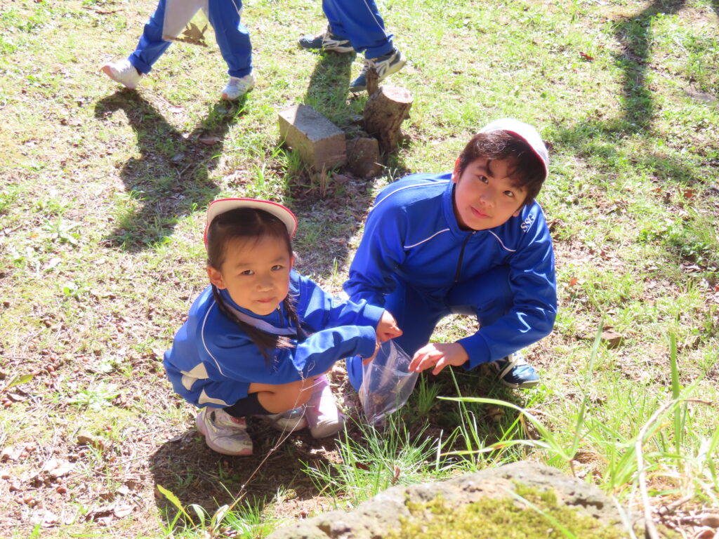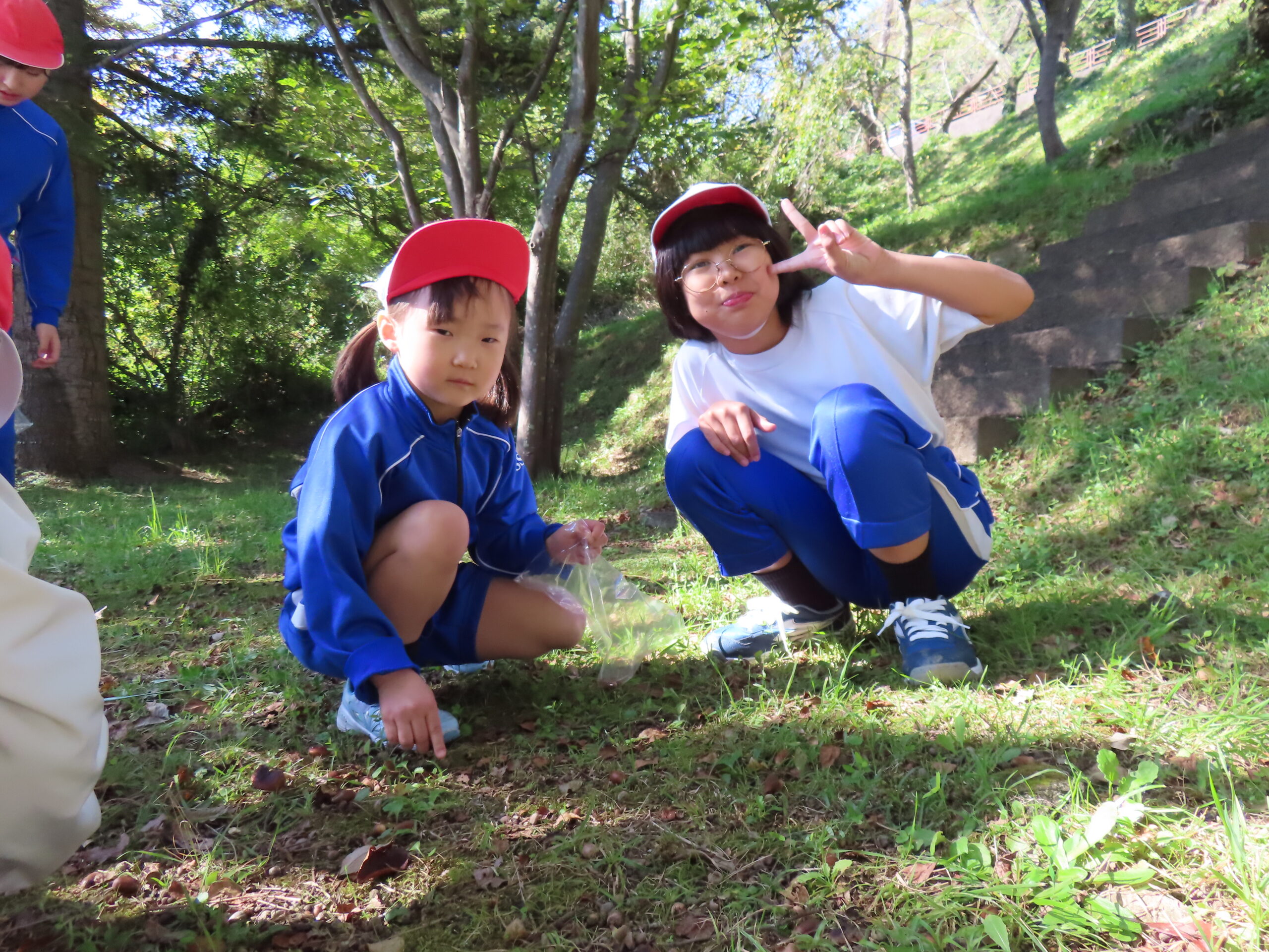 1学期に、5年生からメダカの稚魚を頂き、クラスで飼育してきましたが、今日は大きく育ったメダカを、幼稚園から徒歩20分の「祓川」に放流してきました。それから、近くの公園でおやつを食べて、5年生と一緒にドングリを拾ったり、遊具で遊んだりして、楽しく過ごしてきました。5年生の優しさに触れて、親しみを持った子どもたち。優しさをたくさんいただき、子どもたちはたくさんの愛に満たされていました。