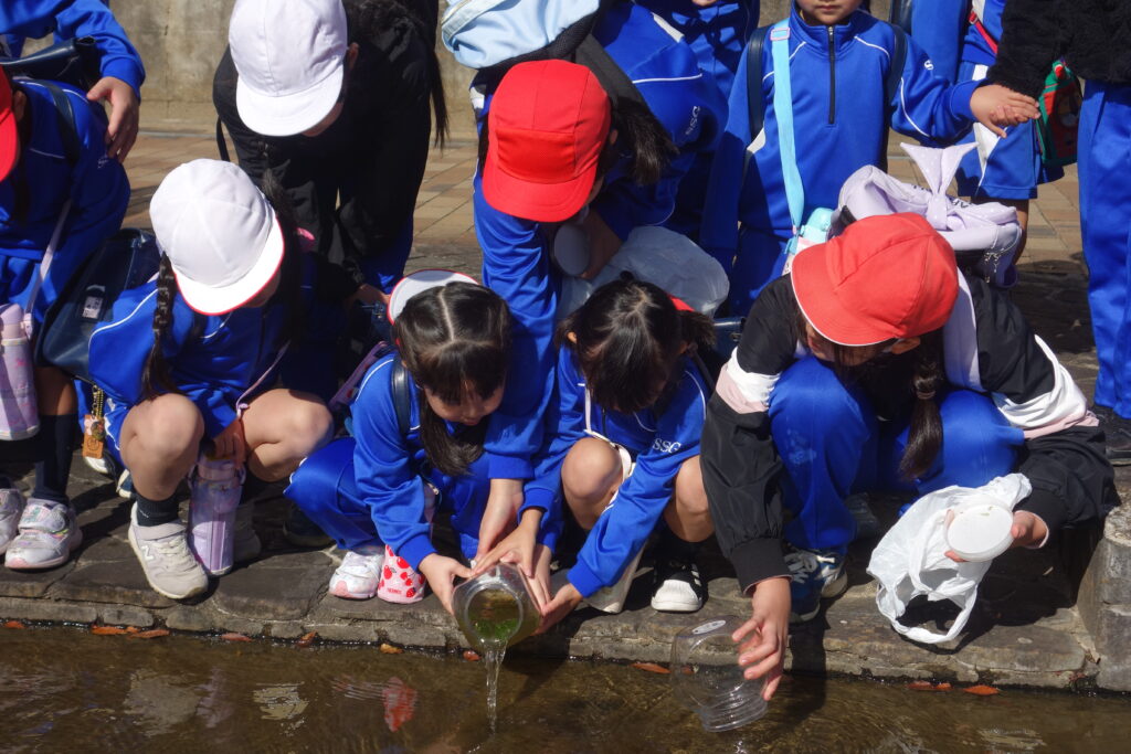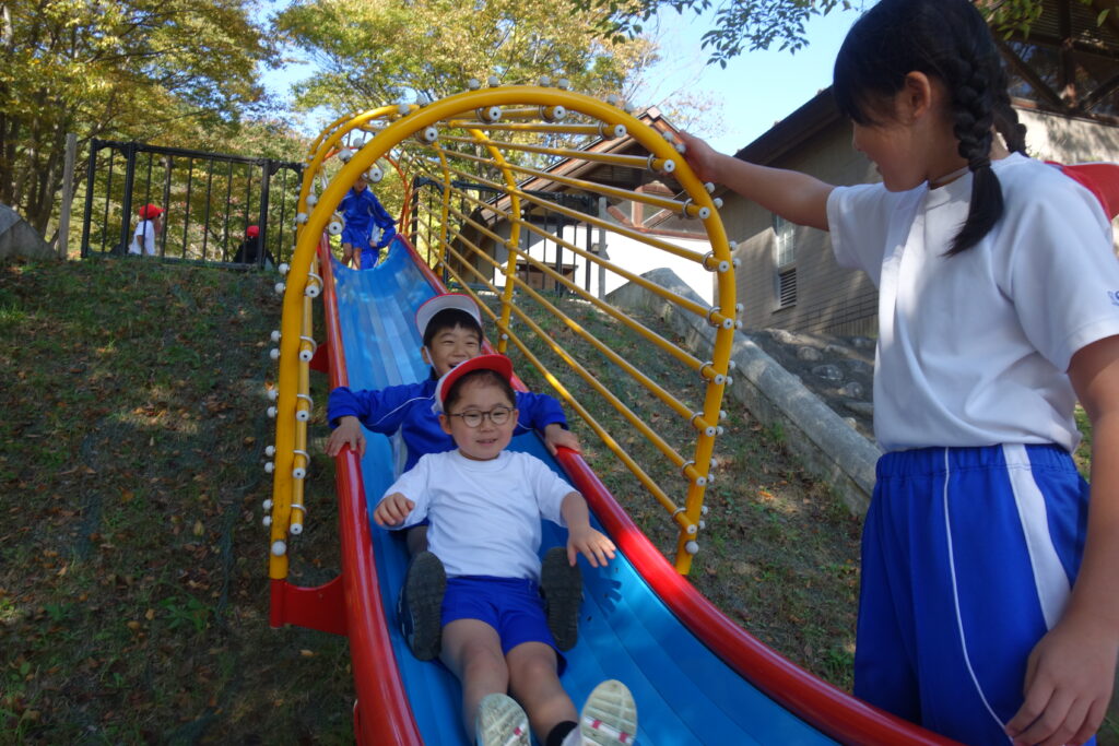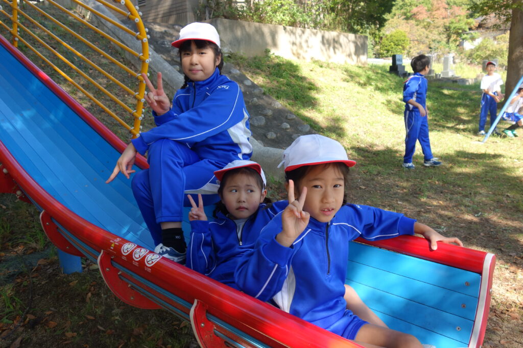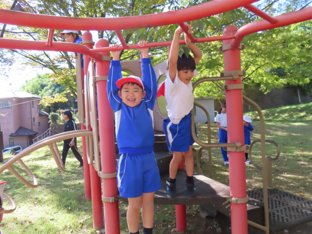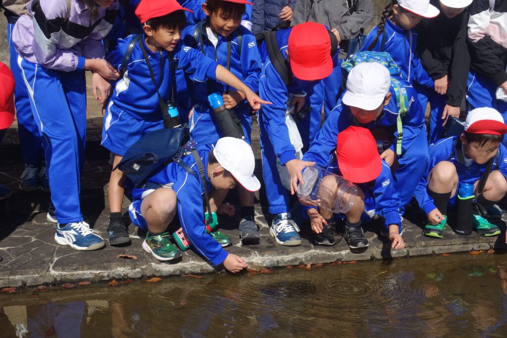 1学期に、5年生からメダカの稚魚を頂き、クラスで飼育してきましたが、今日は大きく育ったメダカを、幼稚園から徒歩20分の「祓川」に放流してきました。それから、近くの公園でおやつを食べて、5年生と一緒にドングリを拾ったり、遊具で遊んだりして、楽しく過ごしてきました。5年生の優しさに触れて、親しみを持った子どもたち。優しさをたくさんいただき、子どもたちはたくさんの愛に満たされていました。