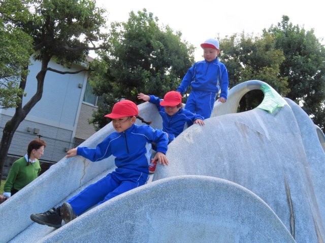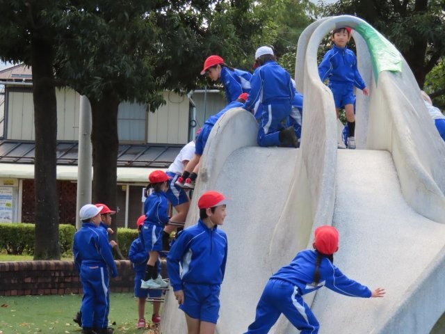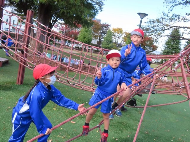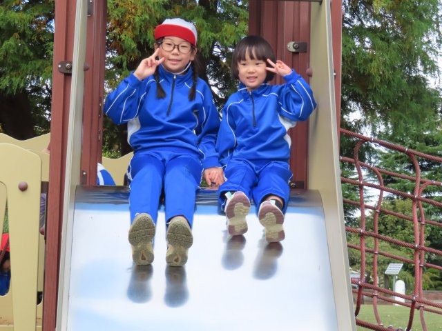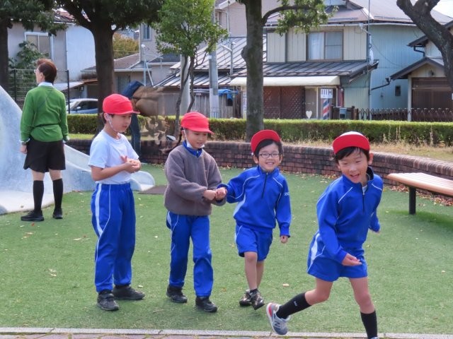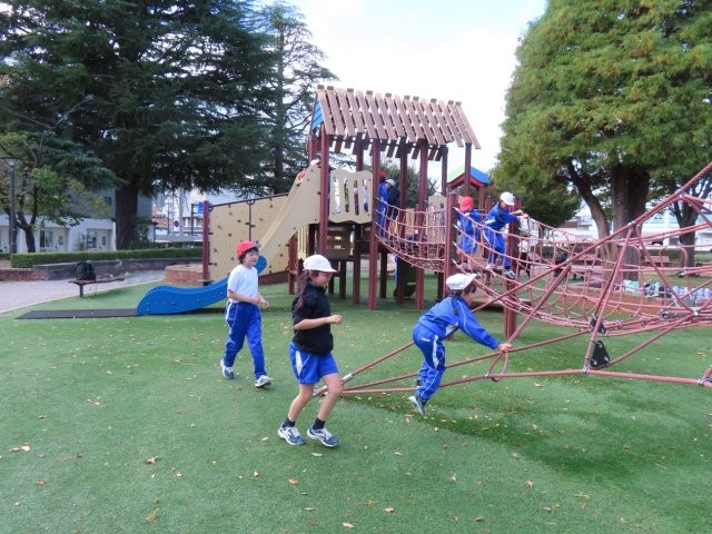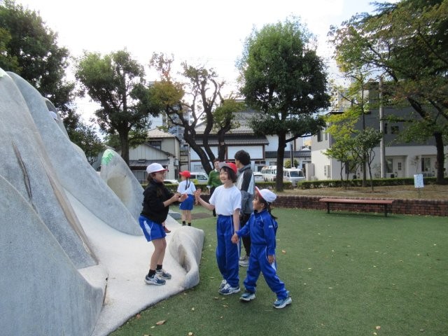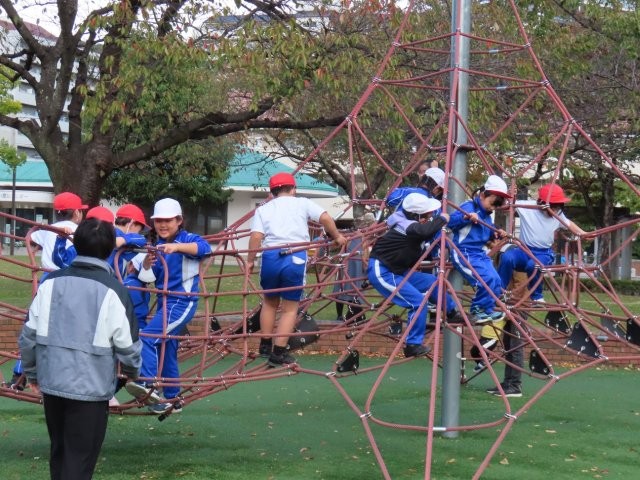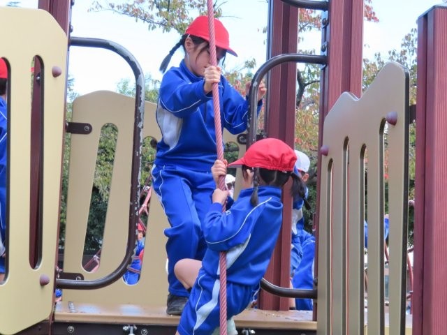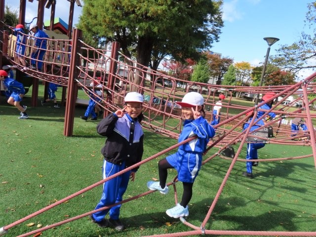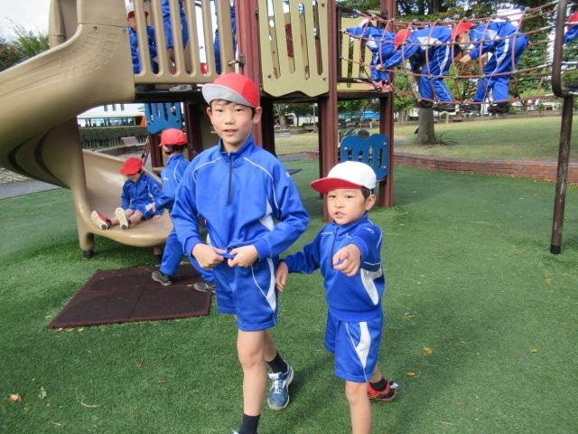 お天気に恵まれ 秋の自然を感じながら、2年生と一緒に 新浜公園に行って遊ぶことができました。