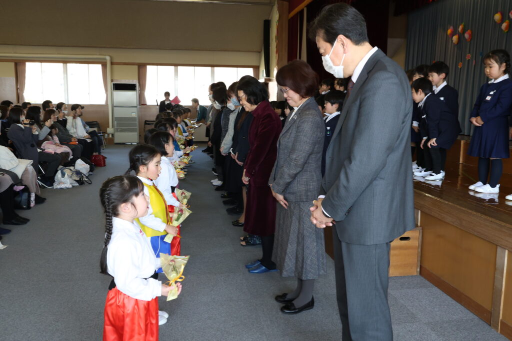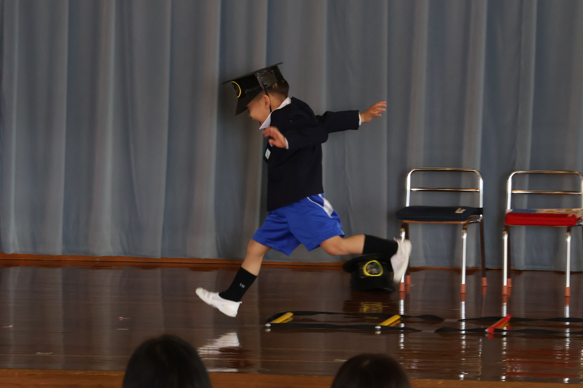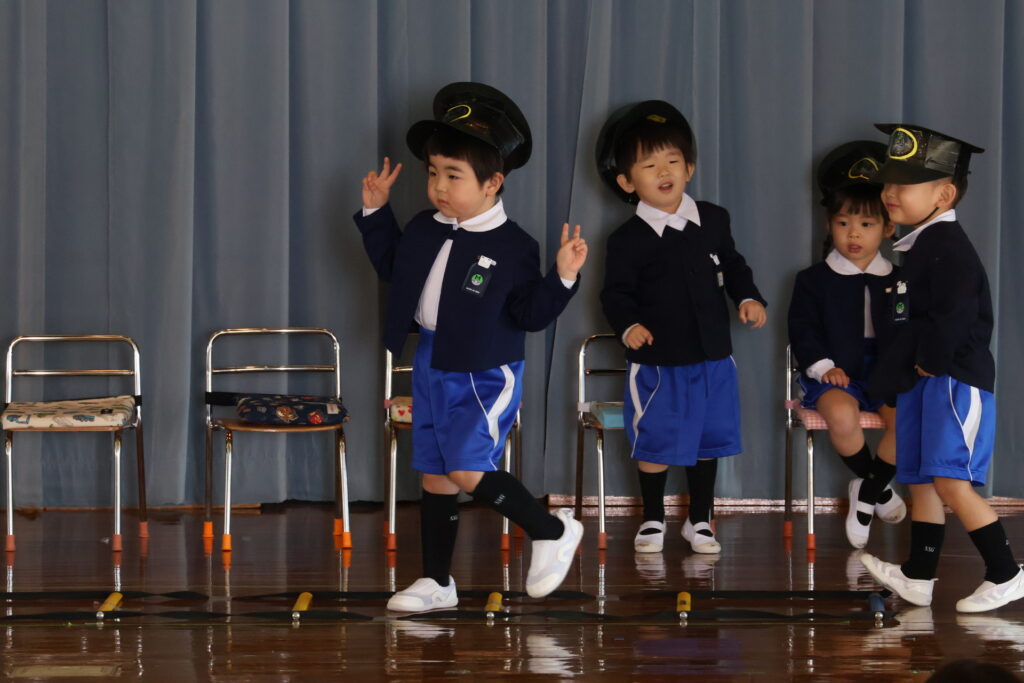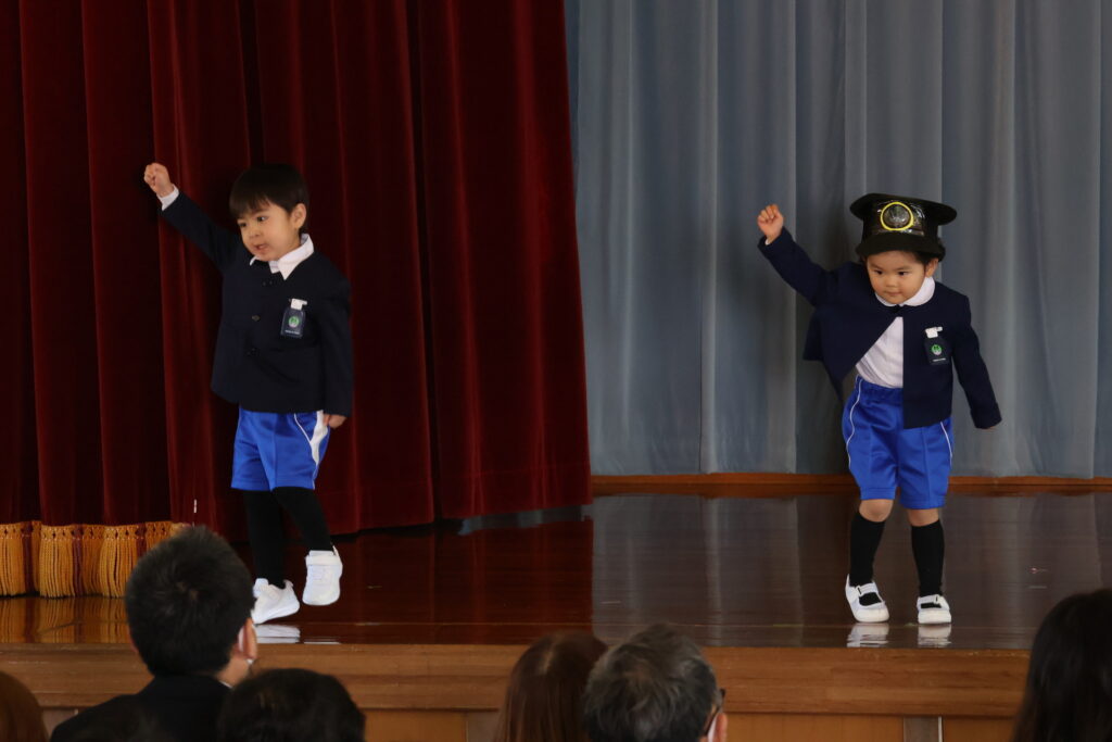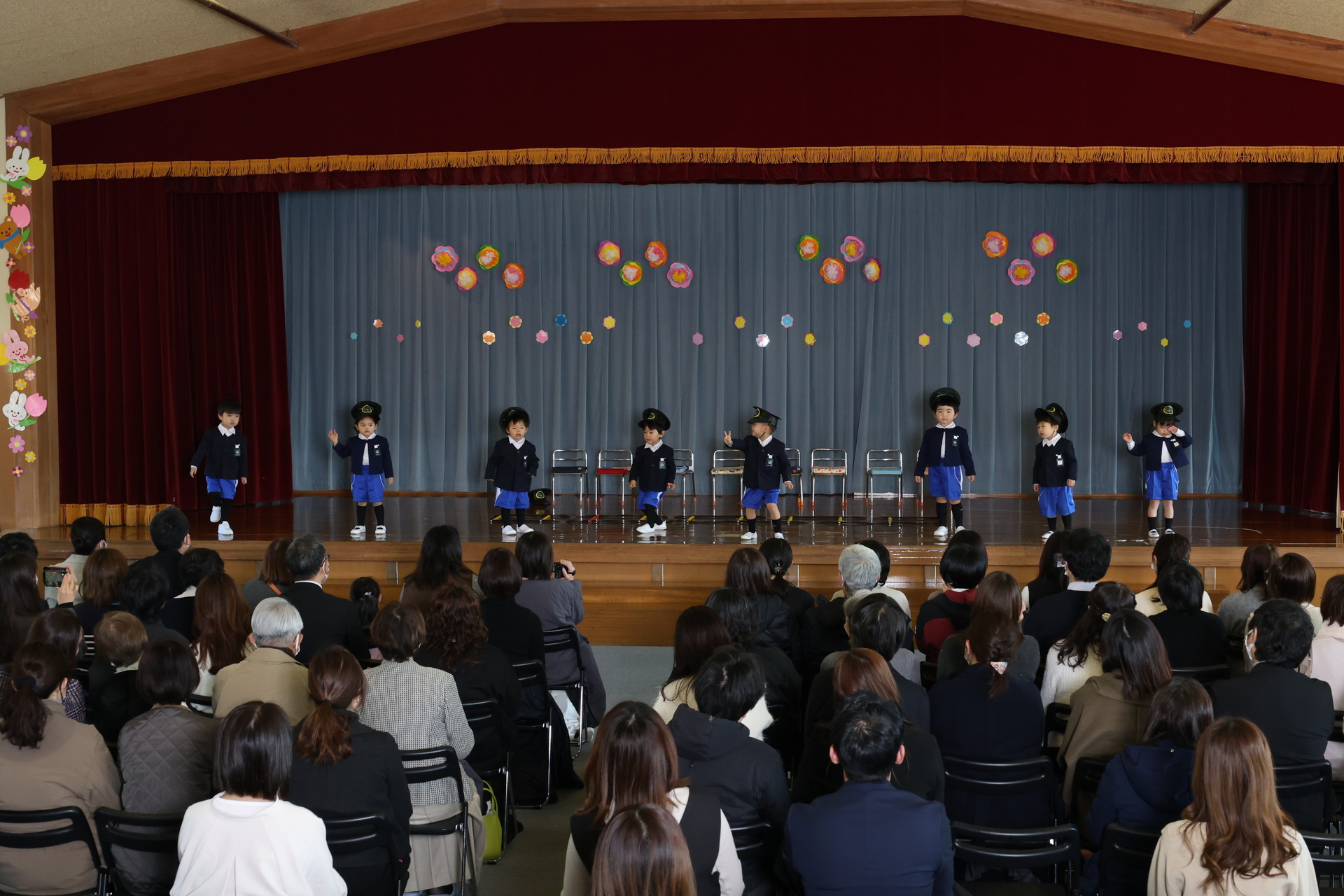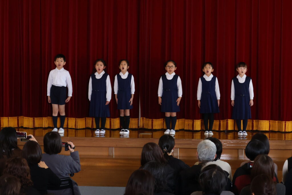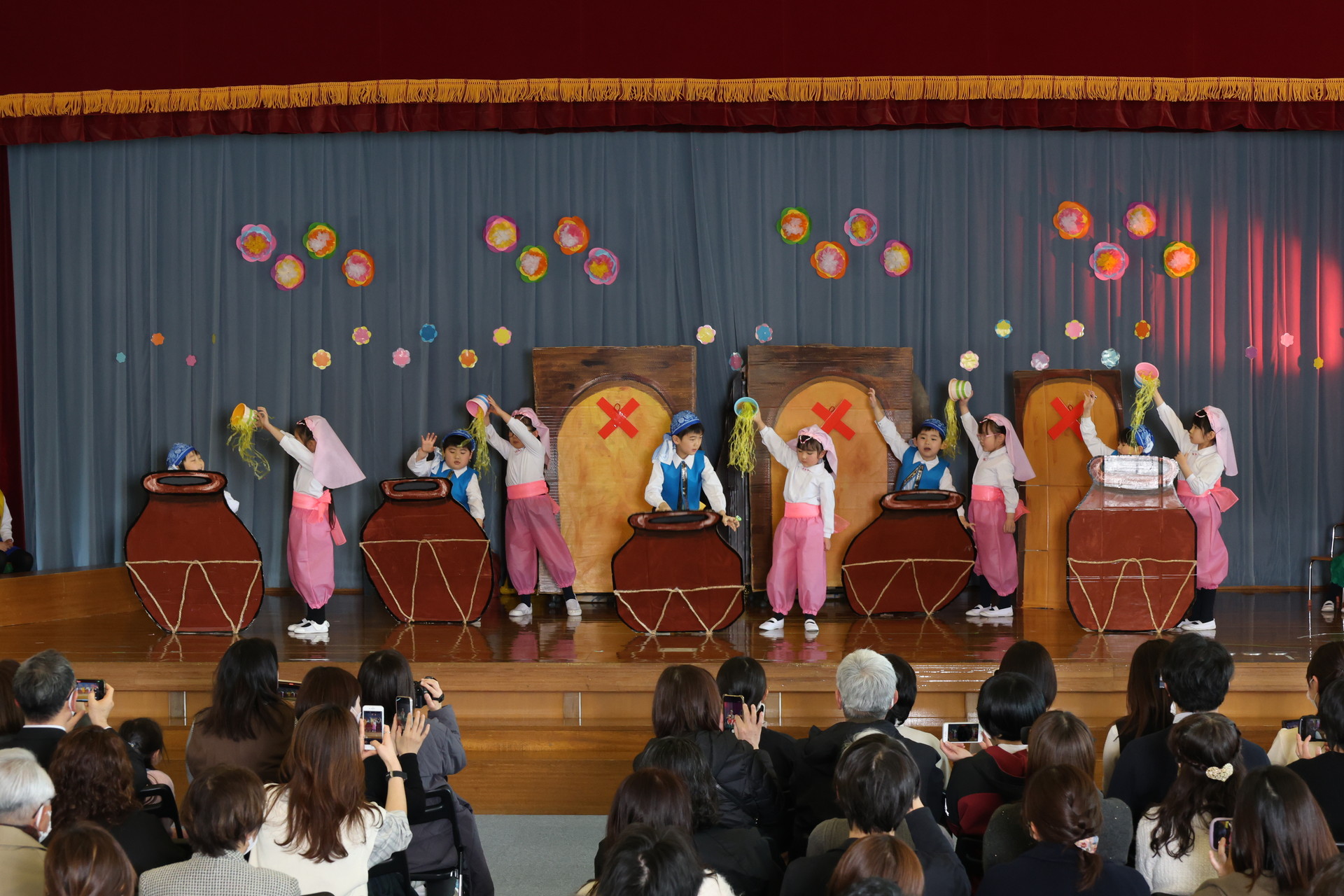 いままでお世話になった先生方やお家の方に、ありがとうの気持ちを込めて、各クラス、劇や踊りを披露しました。子どもたちの笑顔が溢れる温かい会でした。最後に、先生方やお家の方に、お花のプレゼントをしました。