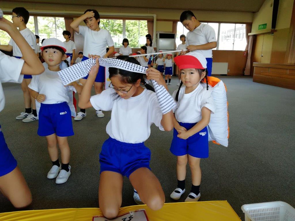9月12日(木)に6年生とちゅうりっぷ組(年少)で幼小交流会を行ないました。6年生がお父さん、お母さん役になり、一緒に運動会の練習をしました。