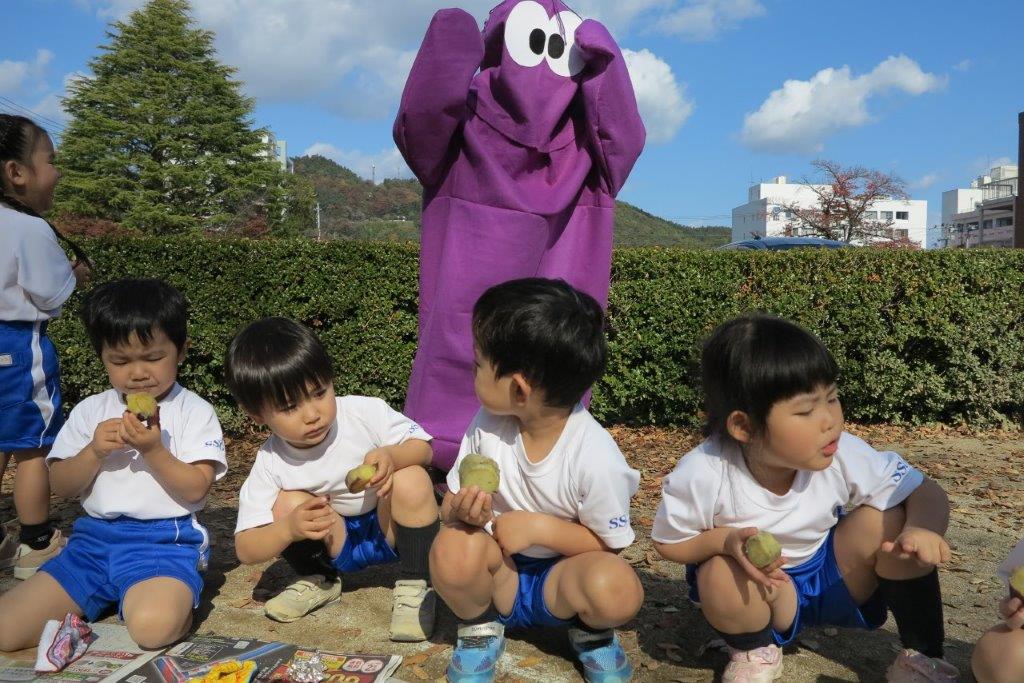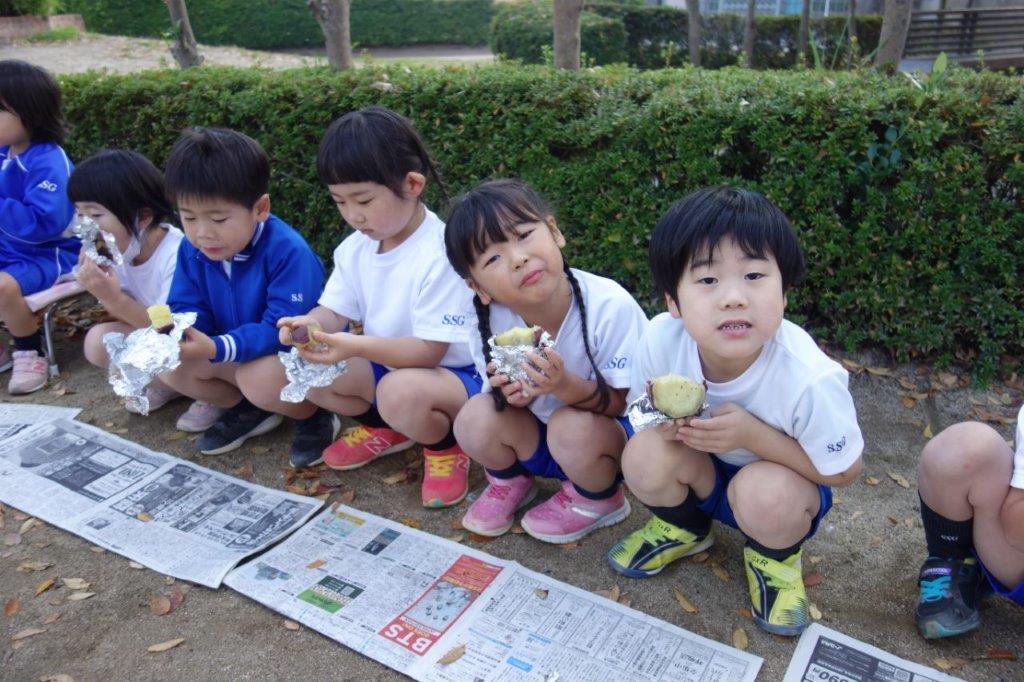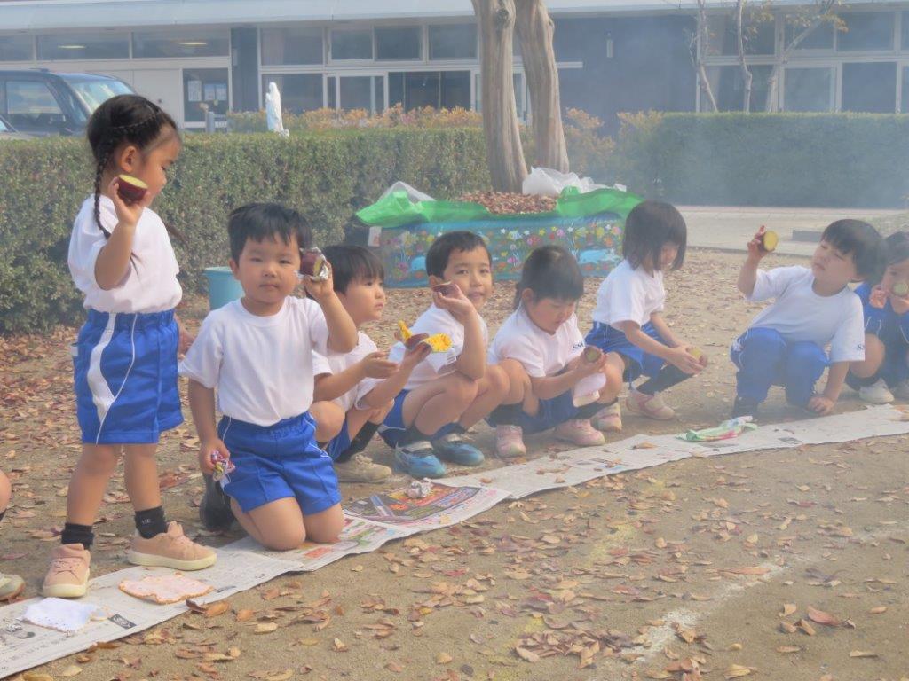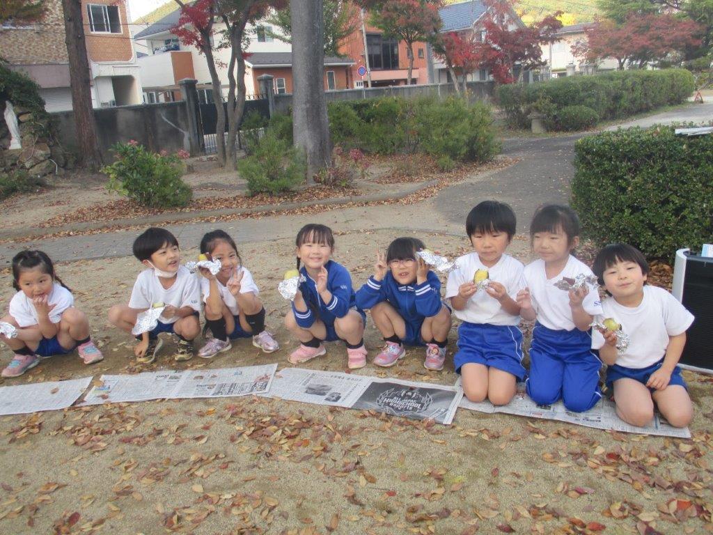 「焼き芋パーティー」をしました。子どもたちが集めた落ち葉に、