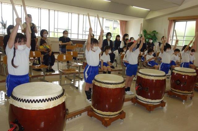 音楽では和太鼓をたたいたり、国語では「ぐるぐるしりとり」をしたり、